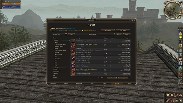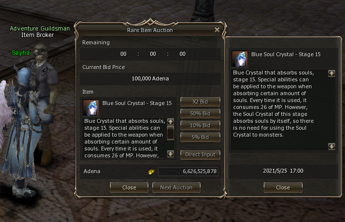 — Minimal price is 1k Adena, maximum price is 1kk Adena.