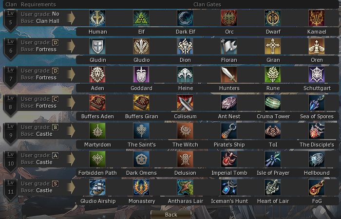 The clan gate system, available to developed clans, enables fast and free teleportation to strategic locations.