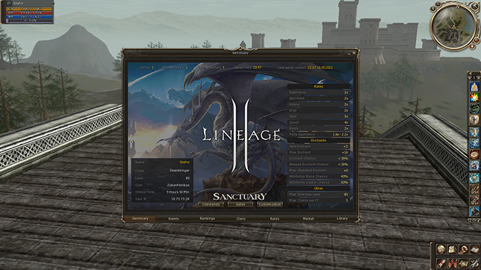 Sanctuary is a server focused on long-term gameplay with an additionally extended initial phase of the game to better balance the pace of play and take full advantage of the content offered by Lineage II.