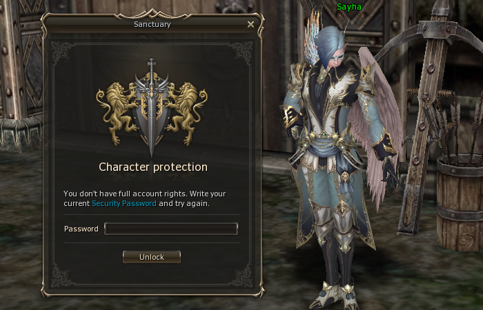— The system does not block the game with a character, it only protects sensitive functions: changing the password, exchanging and destroying items, skins, modifying subclasses, skills, etc.